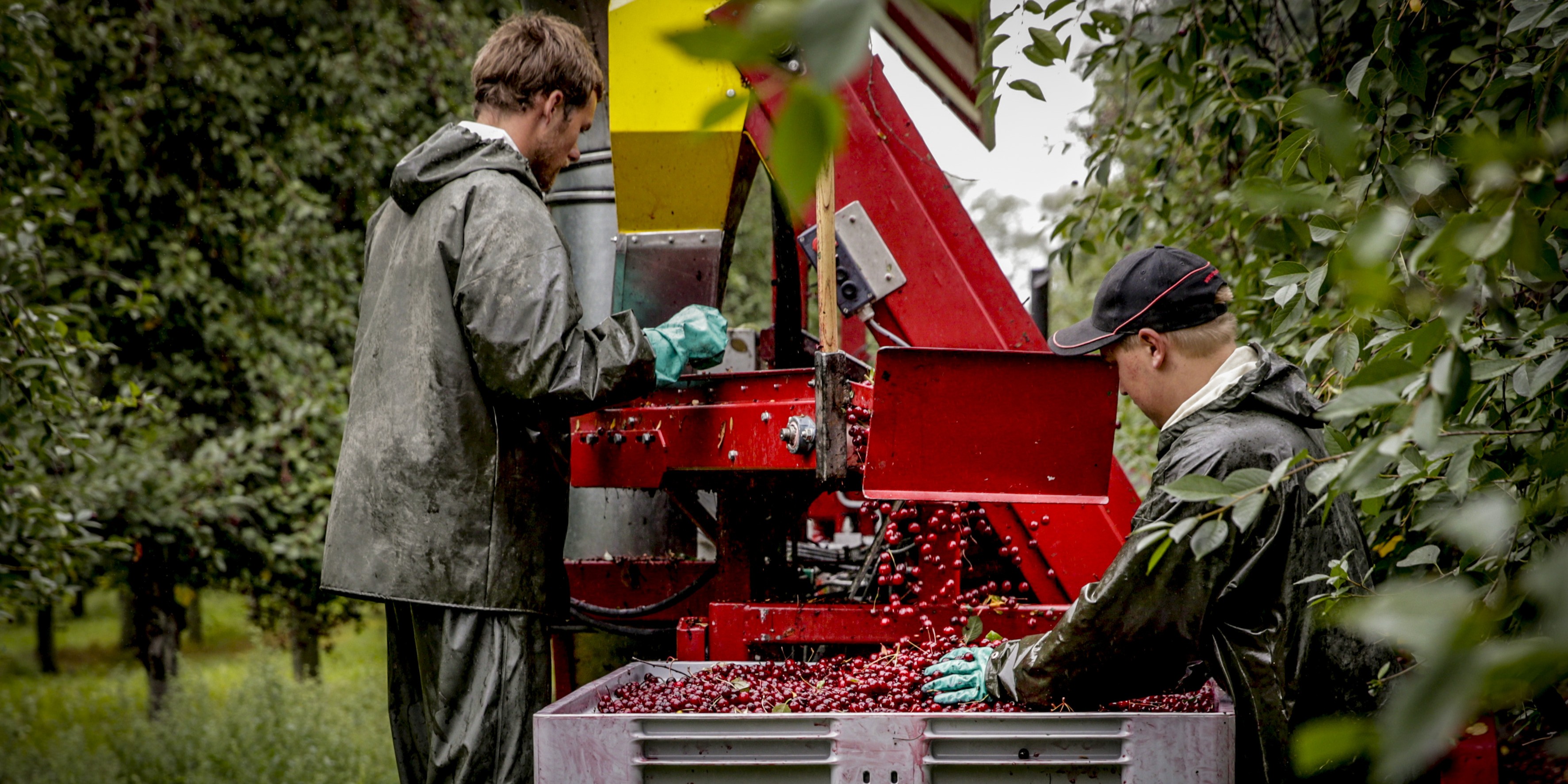 De røde kirsebær på Frederiksdal Gods dyrkes og forarbejdes til vin, saft og juice. (Pressefoto: Ingrid Riis)